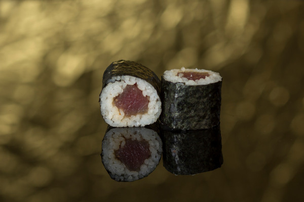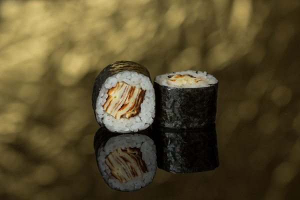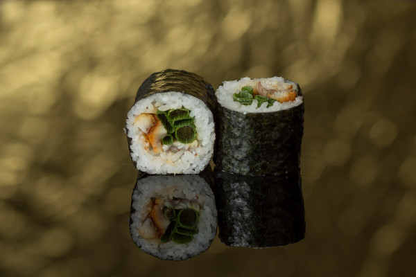 אורז, נורי, צלופח מעושן, שומשום ובצל ירוק.