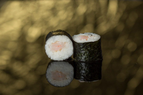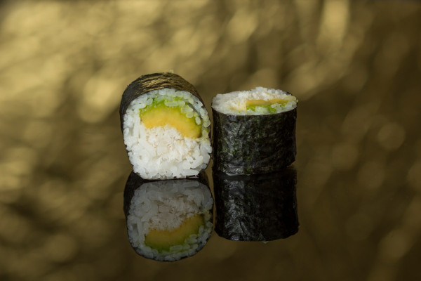 אורז, נורי,בשר סרטנים, אבוקדו ושומשום.