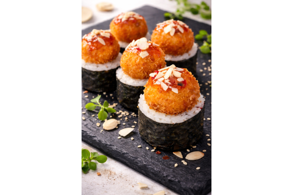 אורז, נורי, גבינת שמנת, סרטן שלג, אבוקדו, כדור סלמון פריך