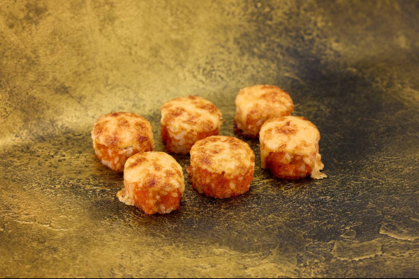 Рис, нори, крем чиз, с/с лосось, огурец, японский майонез, пармезан, чеснок, жаренный лук.